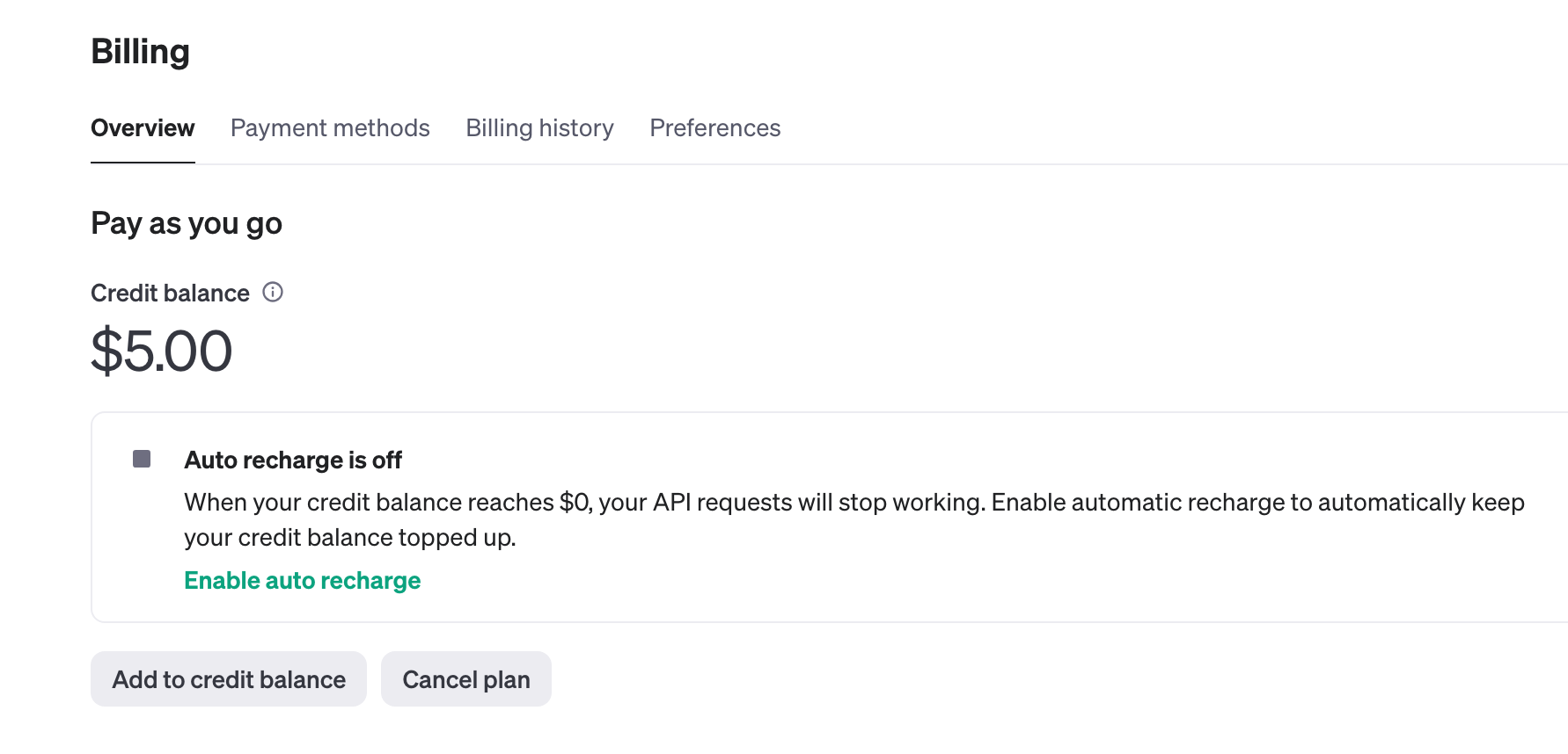 Get API Keys > Plans & billing ์ผ๋ก ๋ค์ด๊ฐ๋ฉด ๋ค์๊ณผ ๊ฐ์ด ํ๋์ ๋ณ๊ฒฝํ ์ ์๋ ํ์ด์ง๊ฐ ๋์จ๋ค.